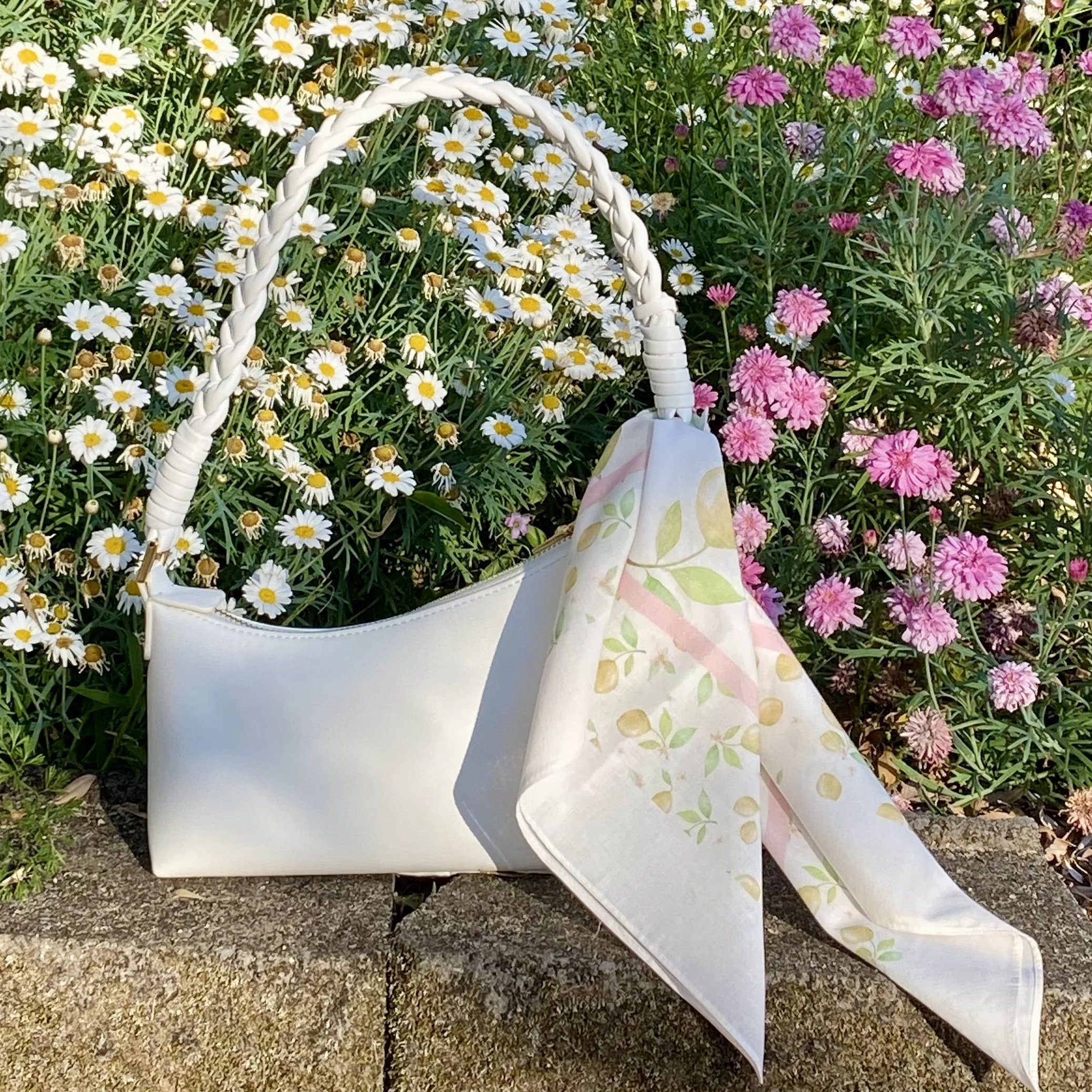 Slip on the Capri Citrus Lemon Scarf and you’ll feel like you’ve just stepped into a golden afternoon on the Amalfi Coast. The airy cotton voile catches the breeze, while the hand-painted lemons and hint of pastel pink bring that irresistible Capri charm to your day.